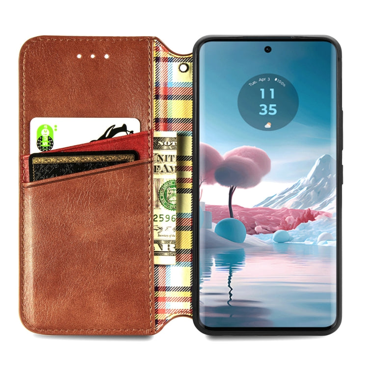 Funda de Cuero Magnético Prensado Cubic Grid para Motorola Edge 40 Neo (Marrón)