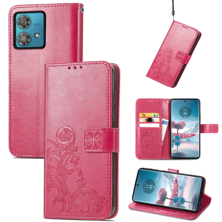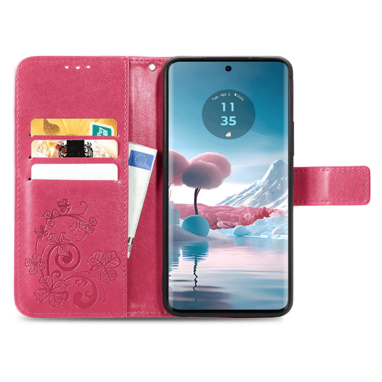Funda de Cuero Repujado para Motorola Edge 40 Neo con Cierre de Cuatro Hojas (Magenta)