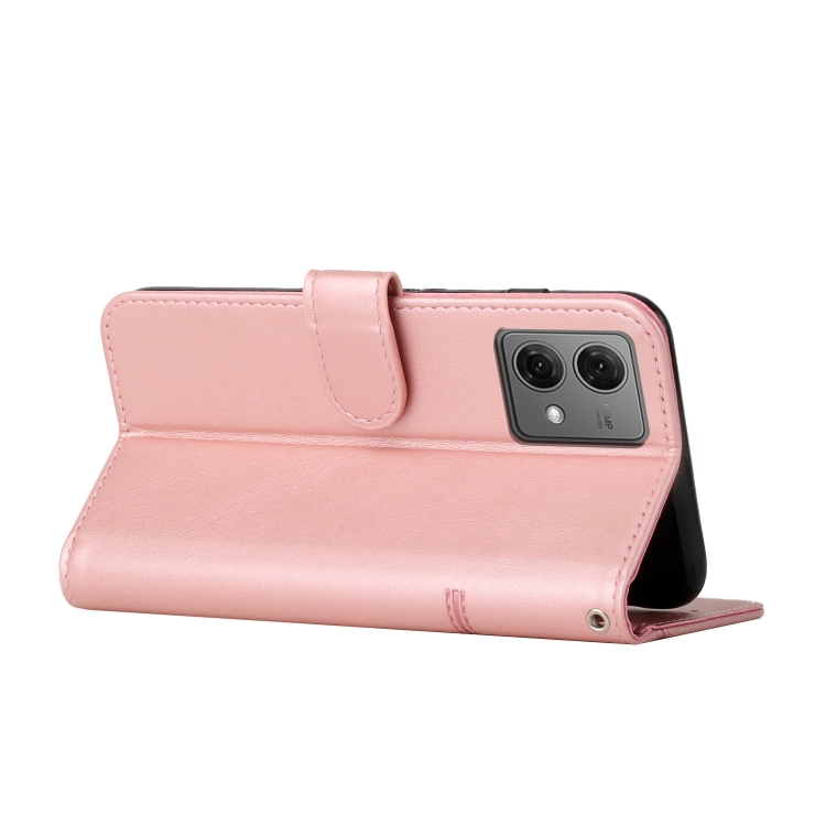 Funda para Motorola Edge 40 Neo de Cuero con Hebilla y Textura de Becerro (Oro Rosa)