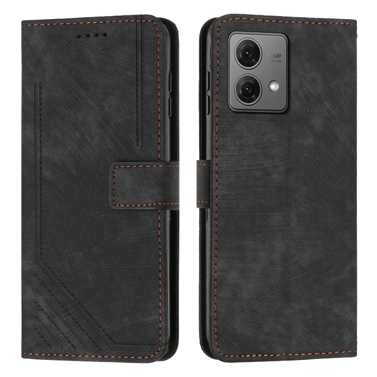 Funda de Cuero Skin Feel para Motorola Edge 40 Neo con Patrón de Rayas y Cordón (Negro)