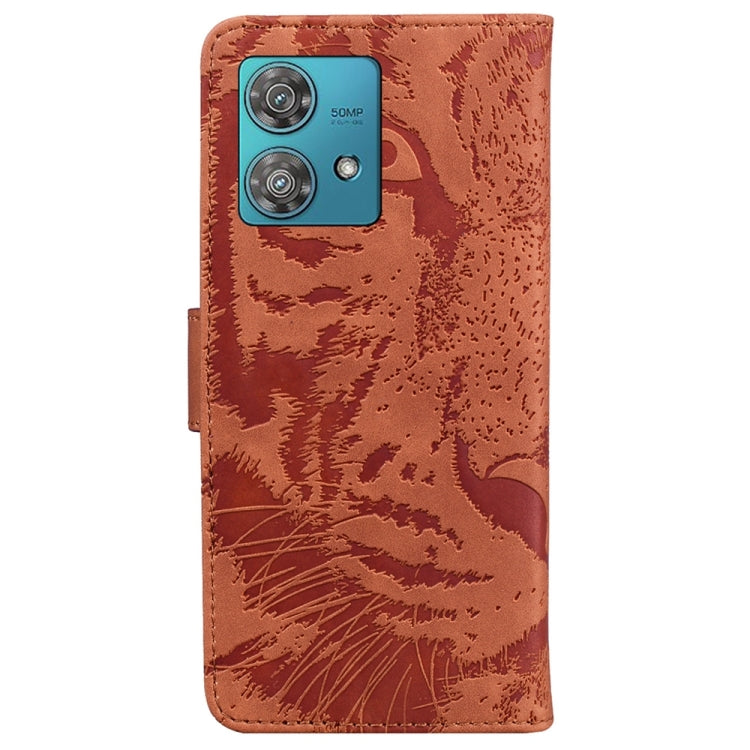 Funda de Teléfono Motorola Edge 40 Neo Tiger Cuero con Patrón en Relieve (Marrón)