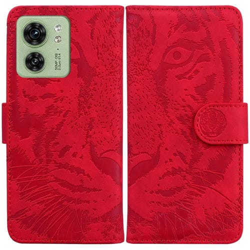 Funda de Cuero para Motorola Edge 40 Tiger con Relieve Patrón (Rojo)