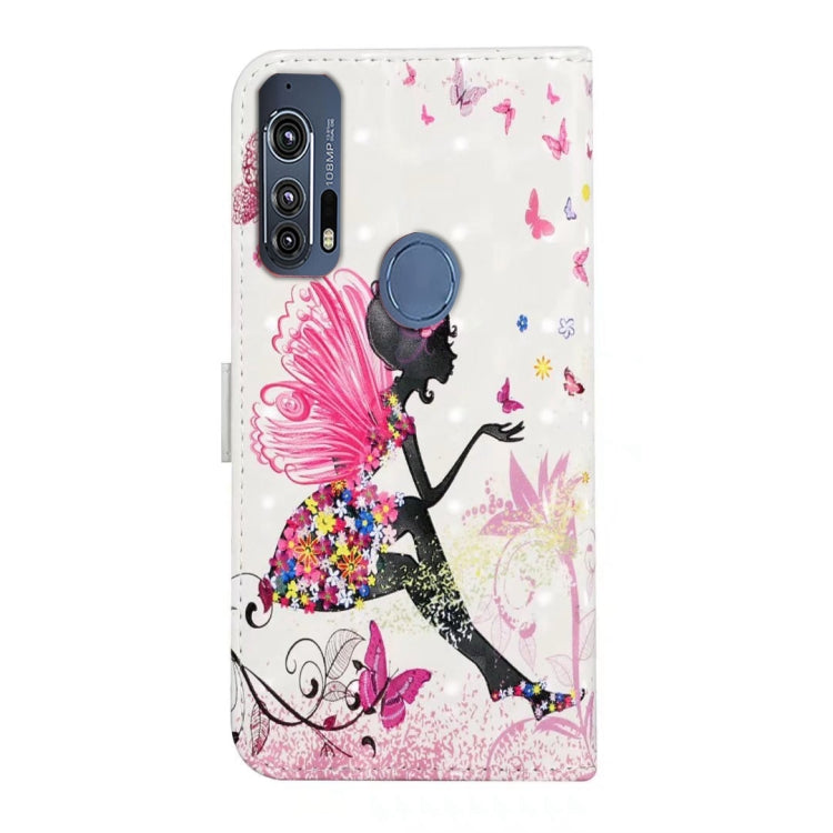 Funda de Cuero para Motorola Edge + con Dibujo 3D en Relieve al Óleo (Hada de Flores)