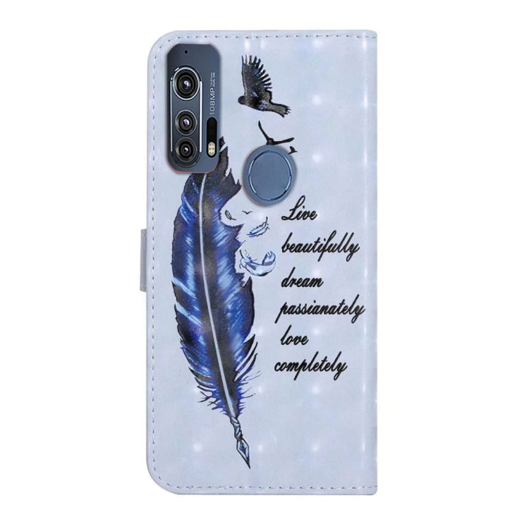 Funda de Cuero para Motorola Edge + con Dibujo 3D en Relieve al Óleo (Pluma Azul)