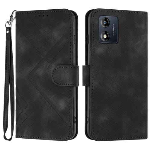 - 1x Funda de Cuero para Motorola Moto E13 con Textura Line Pattern (Negro)