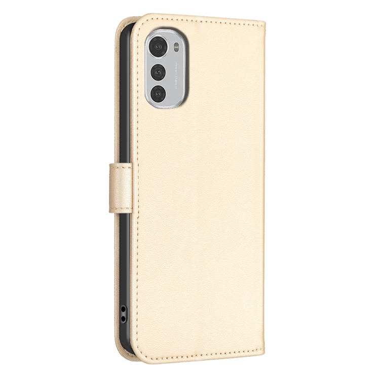 Funda de Cuero para Motorola Moto E32 4G con Relieve de Cuatro Hojas (Dorado)