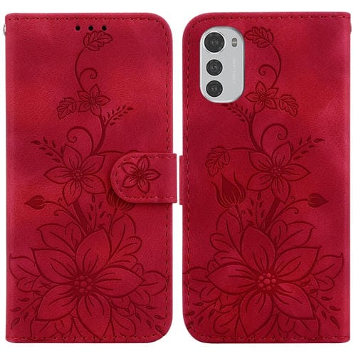 - 1x Funda para Motorola Moto E32 Lily de Cuero en Relieve (Rojo)