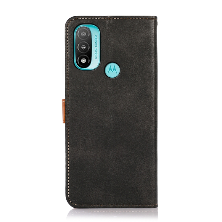 Para MOTOROLA MOTO E40 / E30 / E20 KHAZNEH Caja de cuero de cuero de la textura de la textura de la textura de doble color (negro)