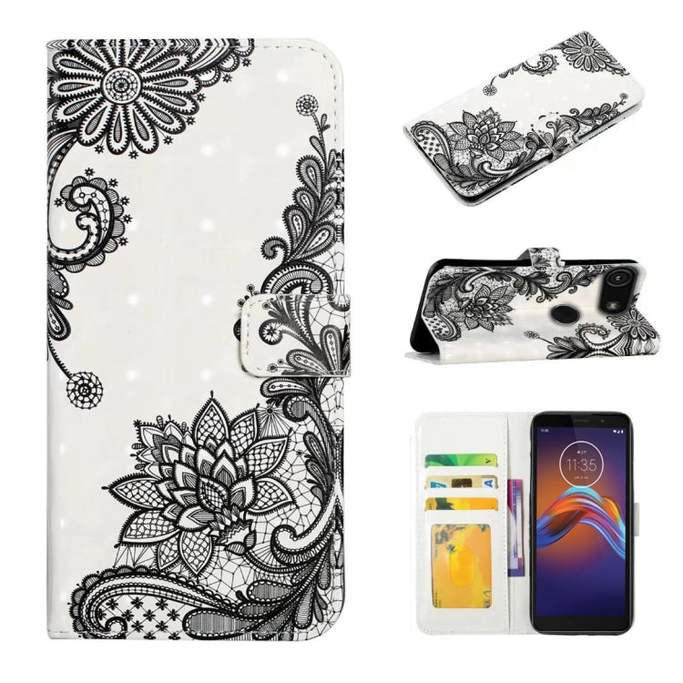Funda de Cuero para Motorola Moto E6 Play con Dibujo 3D en Relieve al Óleo (Flor de Encaje)