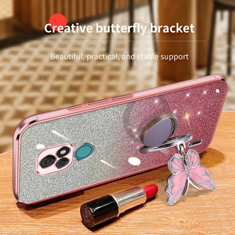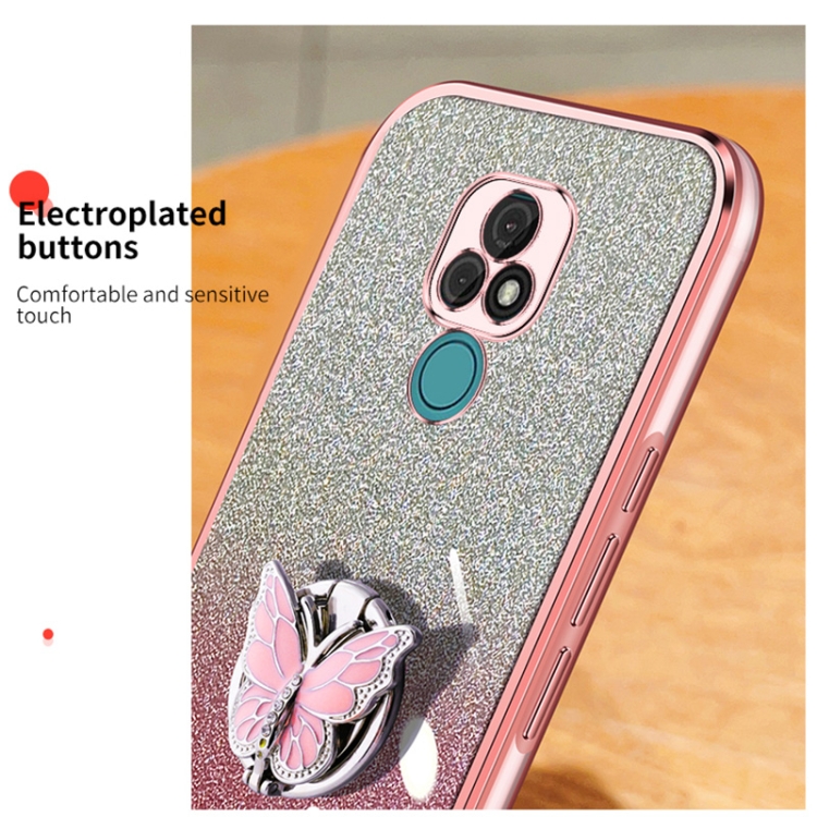 Funda TPU para Motorola Moto E7 con Soporte de Mariposa y Brillo Degradado (Púrpura)