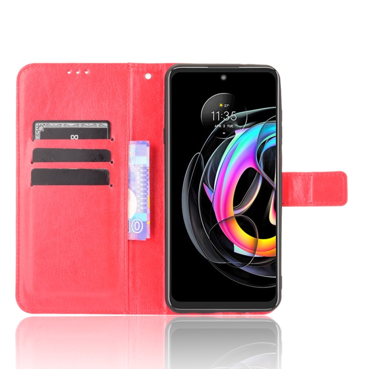 Para Motorola Moto Edge 20 Lite Crazy Horse Texture Horizontal Flip Funda de cuero con soporte y ranuras para tarjetas y cordón (rojo)