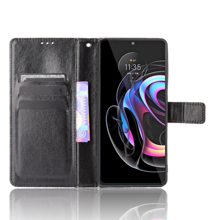Para Motorola Moto Edge 20 Pro / Edge S Pro Crazy Horse Texture Horizontal Flip Funda de cuero con soporte y ranuras para tarjetas y cordón (negro)