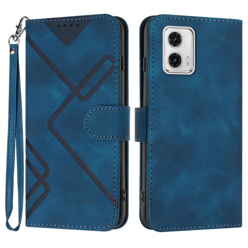 - 1x Funda de Cuero Motorola Moto G 5G (2023) con Patrón de Líneas y Sensación de Piel (Azul Real)