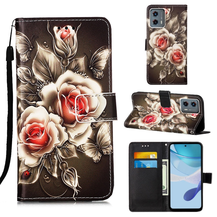 Funda para Motorola Moto G 5G 2023 de Cuero Tejido Liso con Patrón de Rosas (Negro)