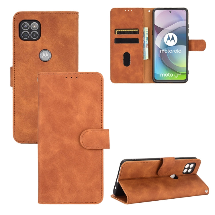 Para Motorola Moto G 5G, color sólido, tacto de la piel, hebilla magnética, textura de becerro abatible horizontal, funda de cuero PU con soporte, ranuras para tarjetas y billetera (marrón)