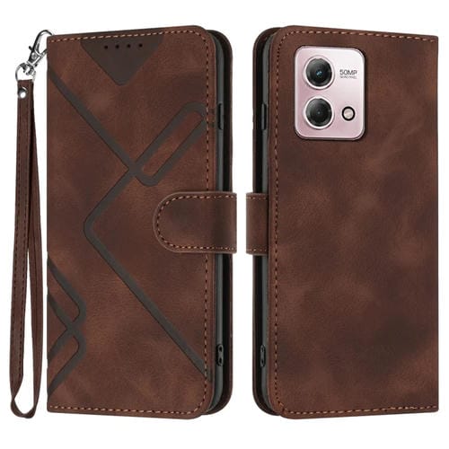 Funda de Cuero Motorola Moto G Stylus 5G 2023 con Patrón de Líneas y Sensación de Piel (Café)