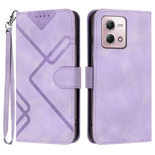 - 1x Funda de Cuero para Motorola Moto G Stylus 5G (2023) con Patrón de Líneas (Púrpura Claro)