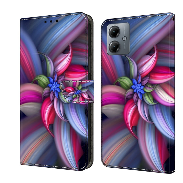 Funda Protectora de Cuero para Motorola Moto G14 Crystal 3D a Prueba de Golpes (Flor Colorida)