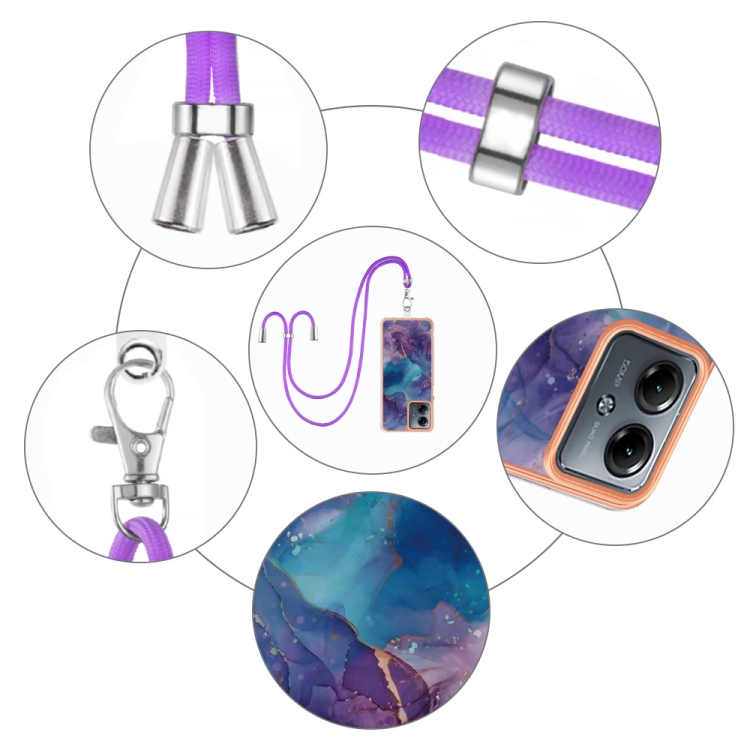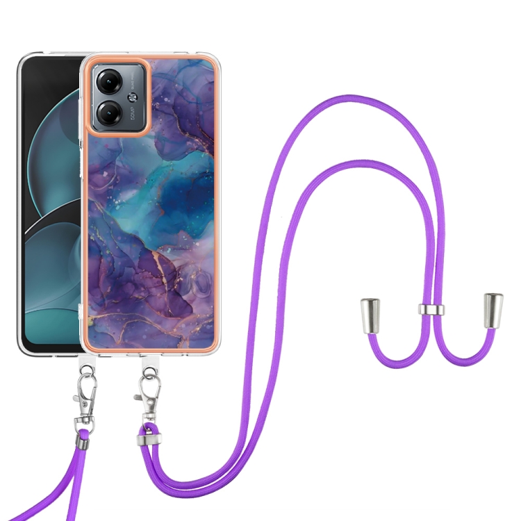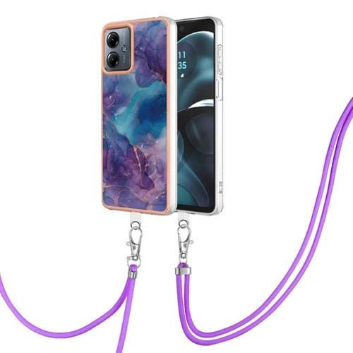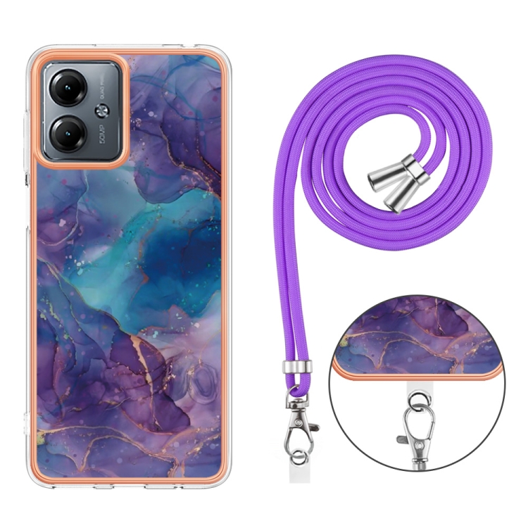 Estuche para Motorola Moto G14 IMD Doble Cara Mármol Galvanizado con Cordón (Púrpura)