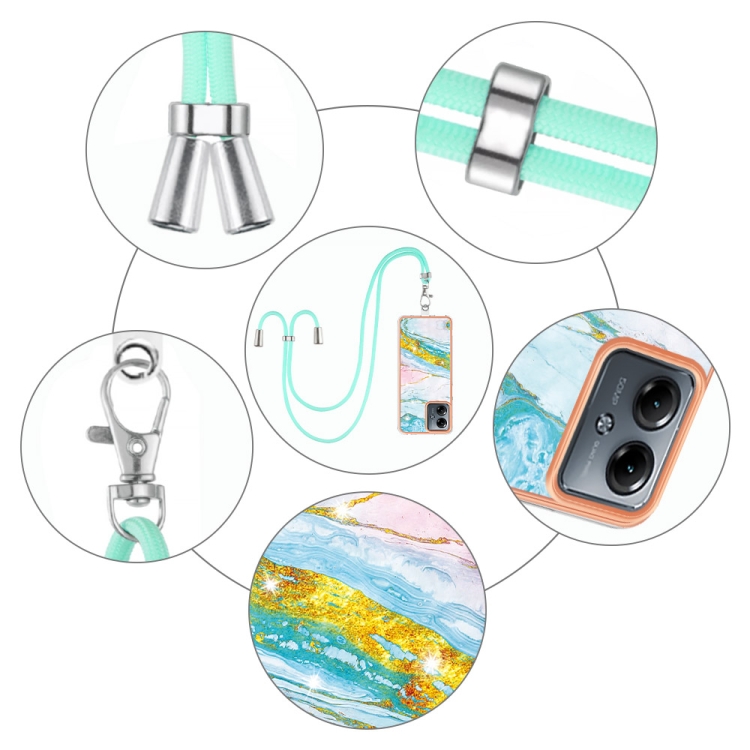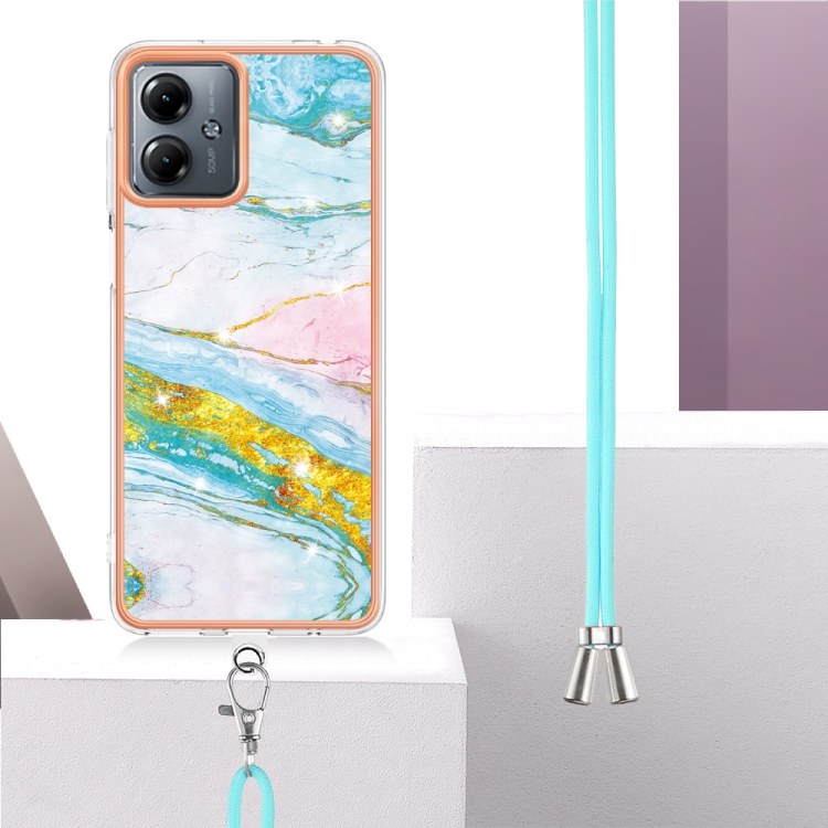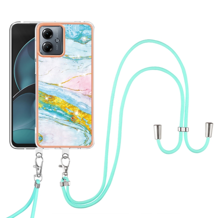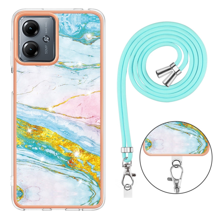 Estuche para Motorola Moto G14 Imd Doble Cara Mármol Galvanizado con Cordón (Verde)
