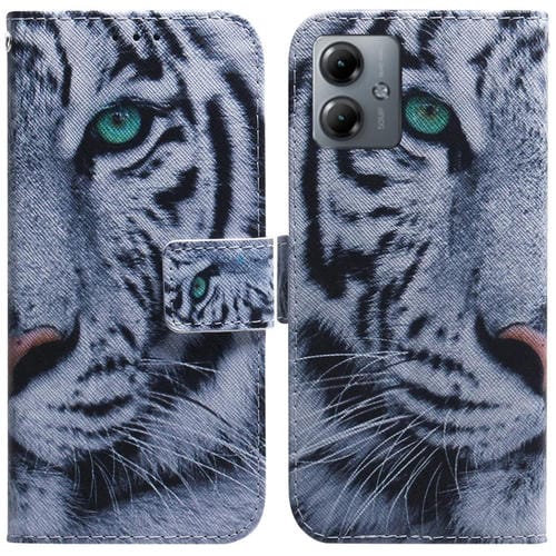 Funda de Cuero para Motorola Moto G14 con Tapa y Dibujo Coloreado (Tigre)