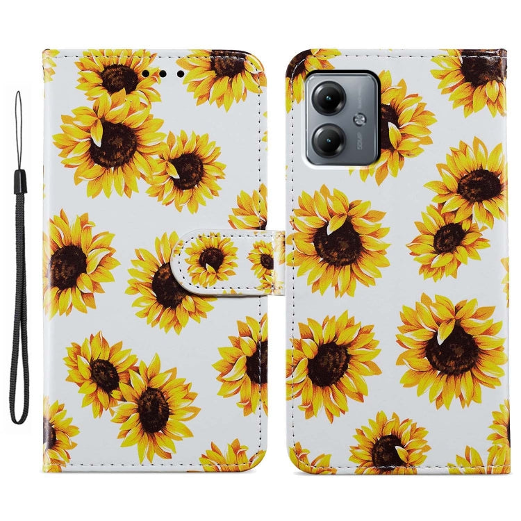 Funda de Cuero para Motorola Moto G14 con Tapa Horizontal y Patrón Pintado (Girasol)