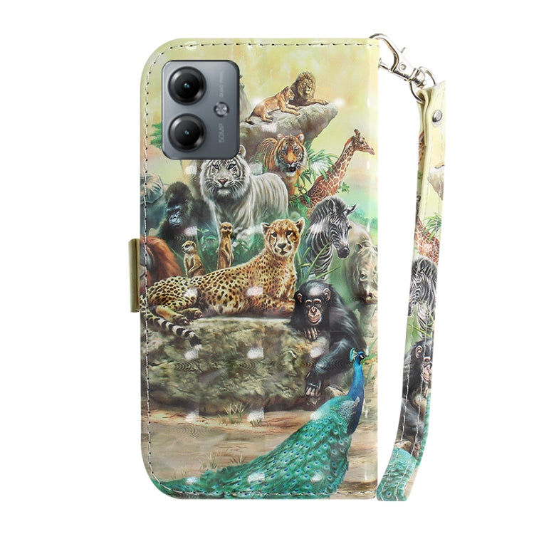 Funda de Cuero para Motorola Moto G14 con Tapa Horizontal y Diseño 3D (Zoo)