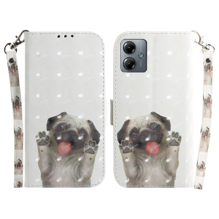 Funda para Motorola Moto G14 de Cuero con Tapa Horizontal y Diseño 3D (Pug)
