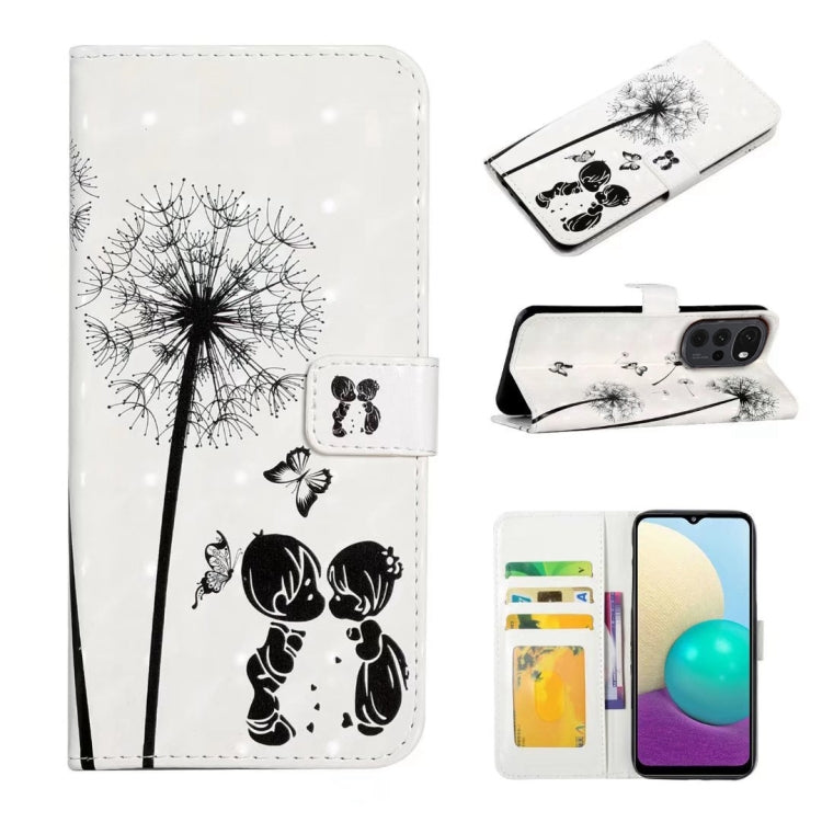 Funda de Cuero para Motorola Moto G22 con Dibujo 3D en Relieve al Óleo (Pareja de Diente de León)