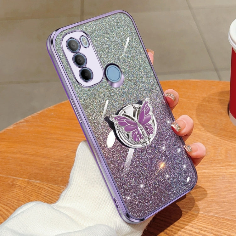 Funda para Motorola Moto G31 TPU con Soporte de Mariposa y Brillo Degradado (Púrpura)