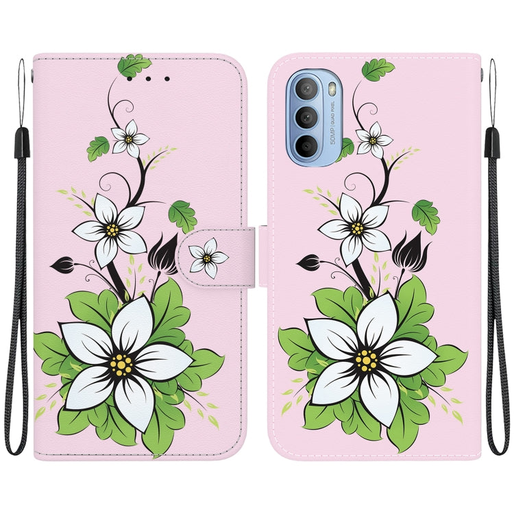 Funda de Cuero para Motorola Moto G31 y G41 con Dibujo Coloreado y Textura de Cristal (Lirio)