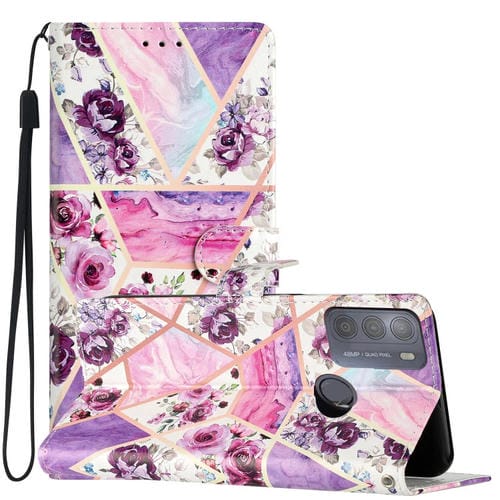 - 1x Estuche de Cuero para Motorola Moto G50 con Dibujo Coloreado (Mármol Púrpura)
