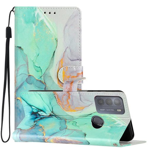 Estuche para Teléfono Motorola Moto G50 de Cuero con Dibujo Coloreado (Mármol Verde)