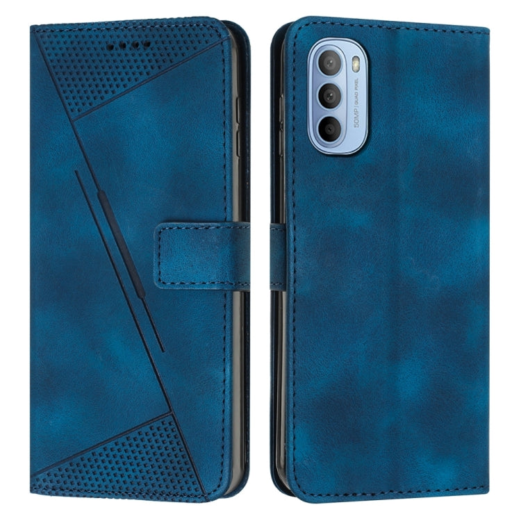Funda de Cuero para Motorola Moto G51 5G Dream Triangle con Cordón (Azul)