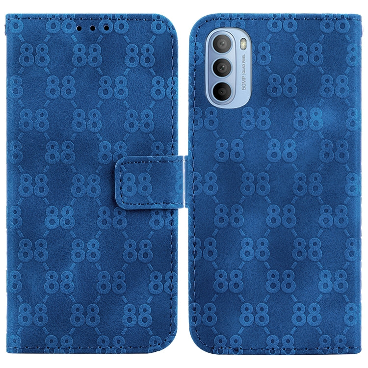 - 1x Estuche para Motorola Moto G51 de cuero en relieve con doble forma de 8 (Azul)