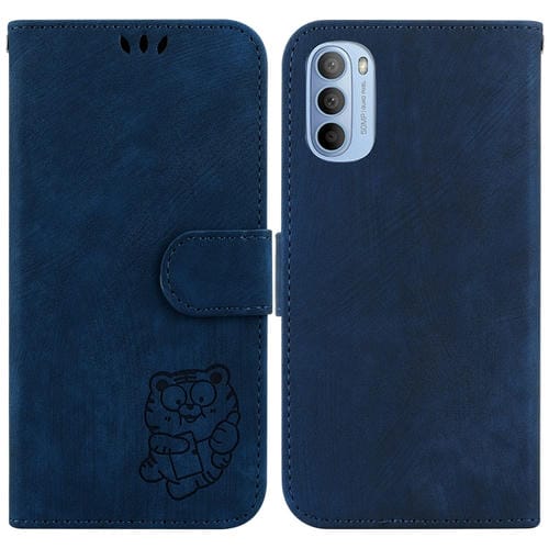 - 1x Funda de Cuero para Motorola Moto G51 con Relieve Little Tiger (Azul Oscuro)