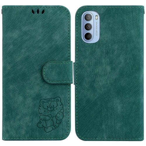 - 1x Funda de Cuero para Motorola Moto G51 con Relieve Little Tiger (Verde)