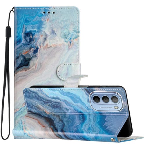 Estuche para Teléfono Motorola Moto G52 de Cuero con Dibujo Coloreado (Mármol Azul)