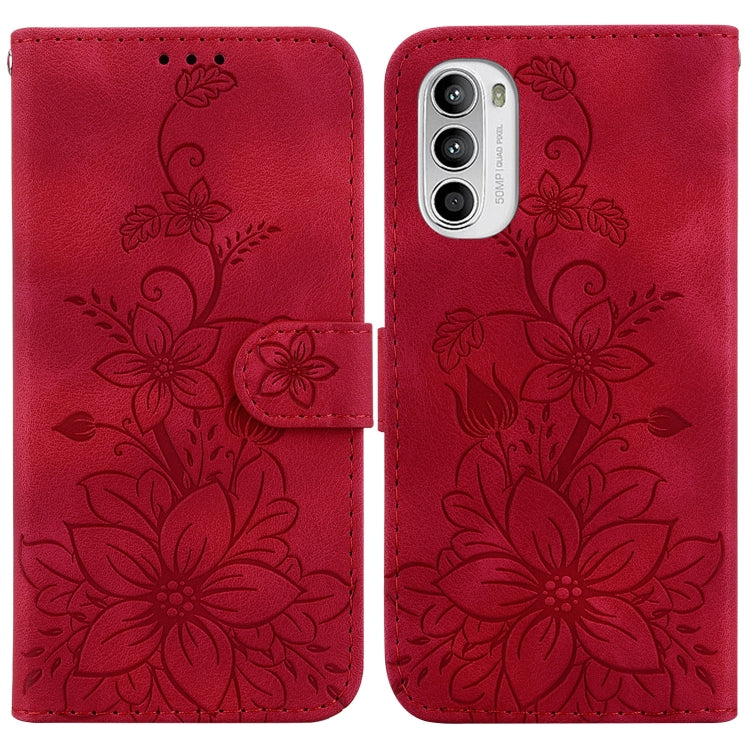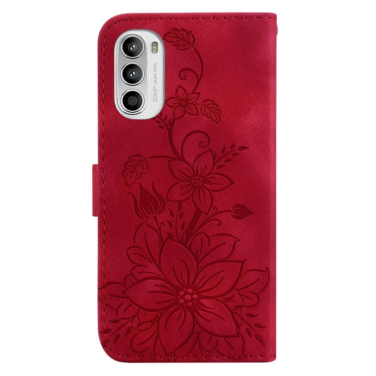 Funda para Motorola Moto G52 Lily de Cuero en Relieve (Rojo)