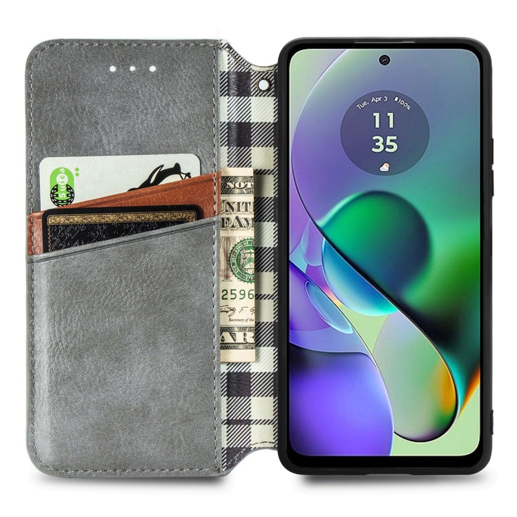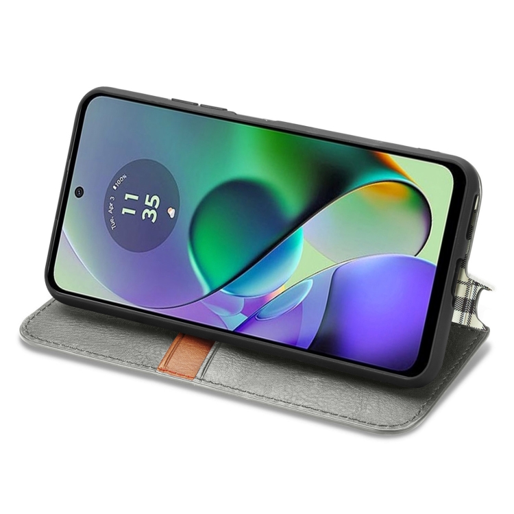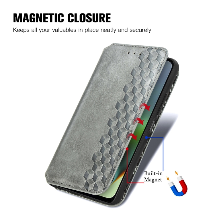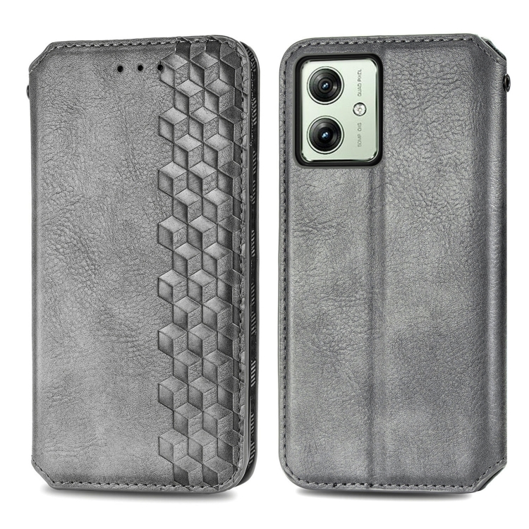 Funda de Cuero Magnético Prensado para Motorola Moto G54 5G Cubic Grid (Gris)