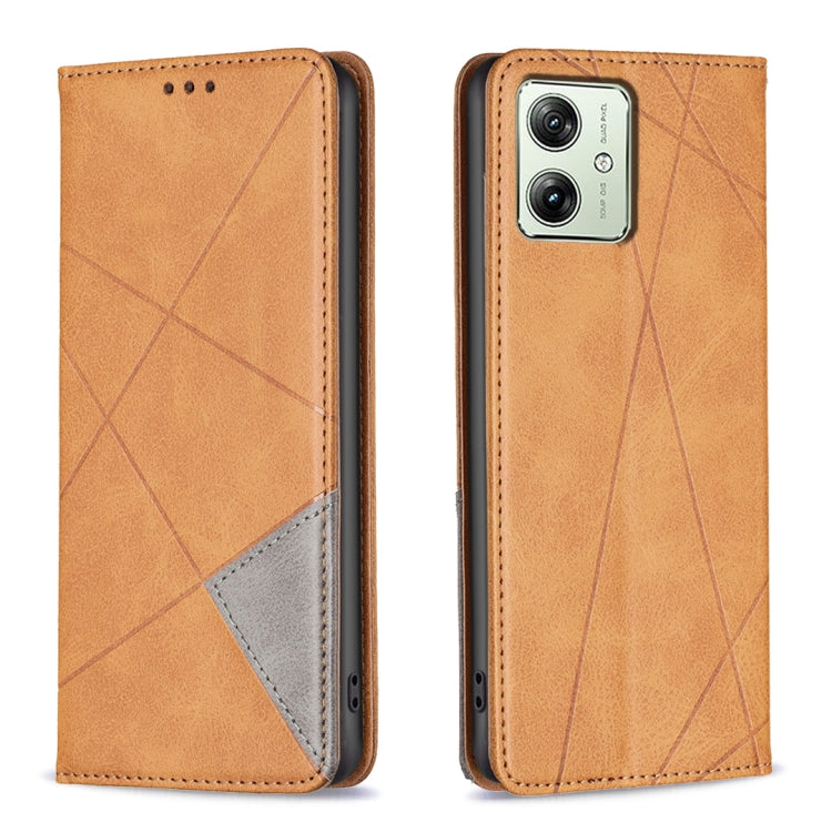 Funda para Motorola Moto G54 5G Eu Edition de Cuero Magnético con Textura Rombo (Amarillo)