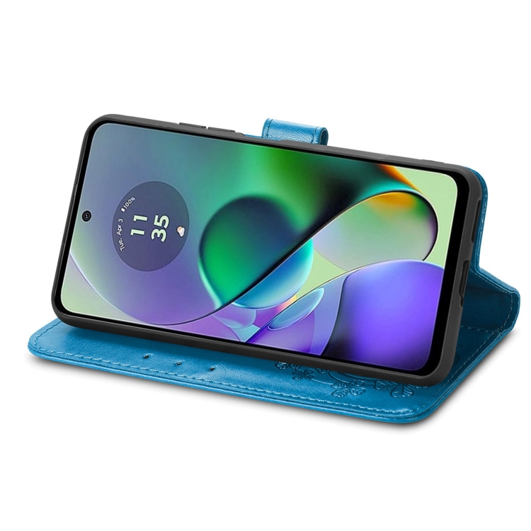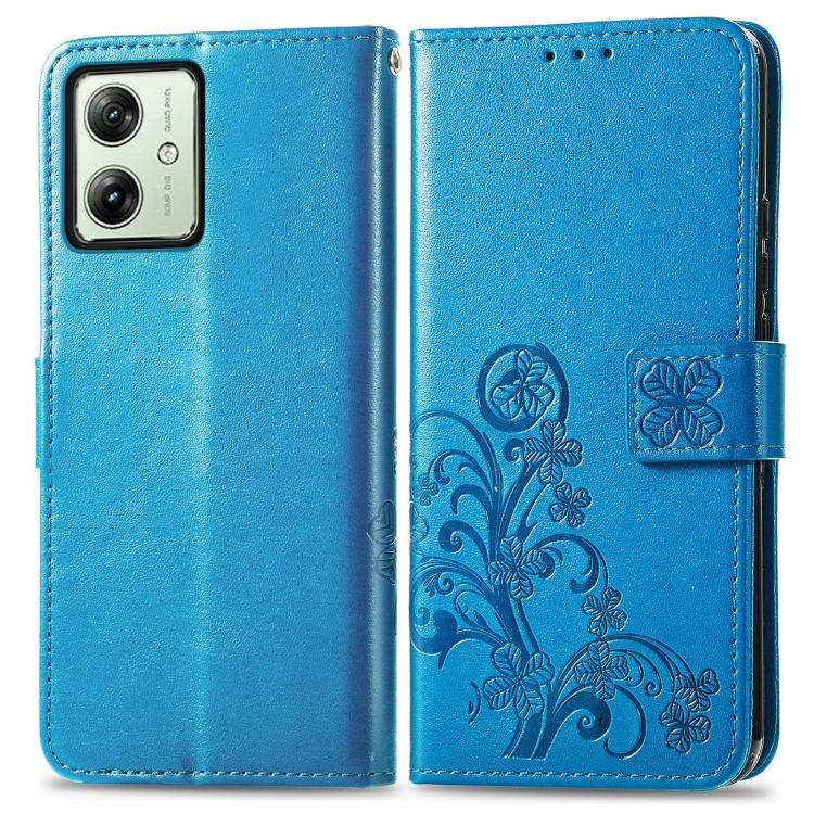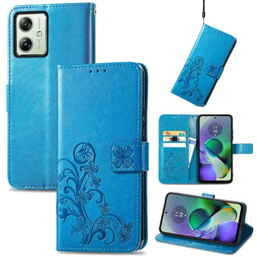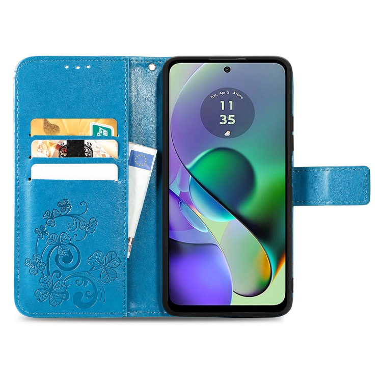Funda para Motorola Moto G54 5G de Cuero Repujado con Cierre de Cuatro Hojas (Azul)