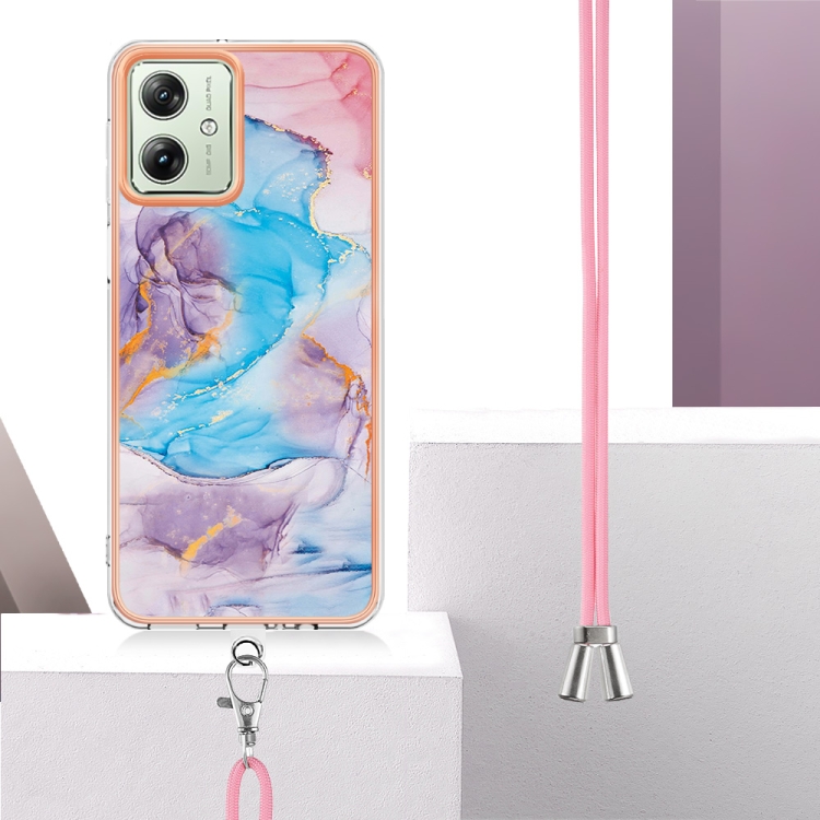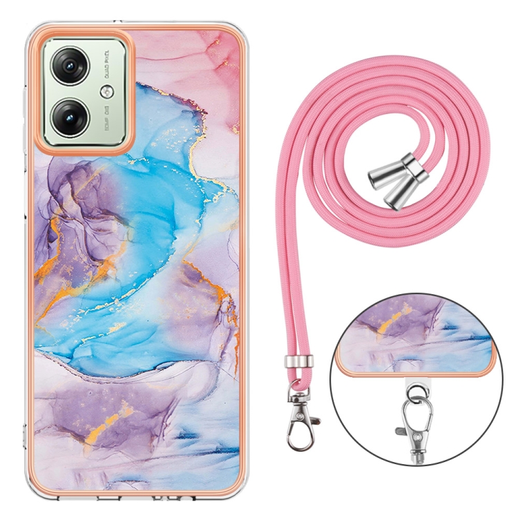 Estuche para Motorola Moto G54 TPU Imd con Galvanoplastia y Cordón (Mármol Azul)