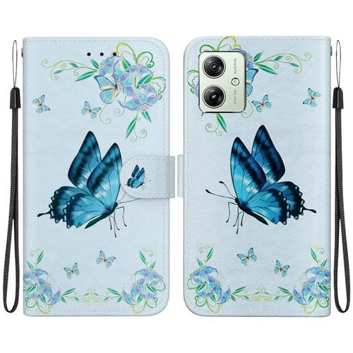 - 1x Funda de Cuero para Motorola Moto G54 con Dibujo Coloreado y Textura de Cristal (Pensamientos Azules)