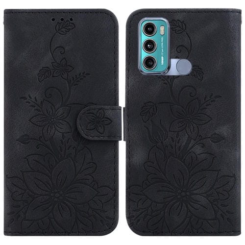 - 1x Funda de Cuero para Motorola Moto G60 / G40 Fusion Lily en Relieve (Negro)