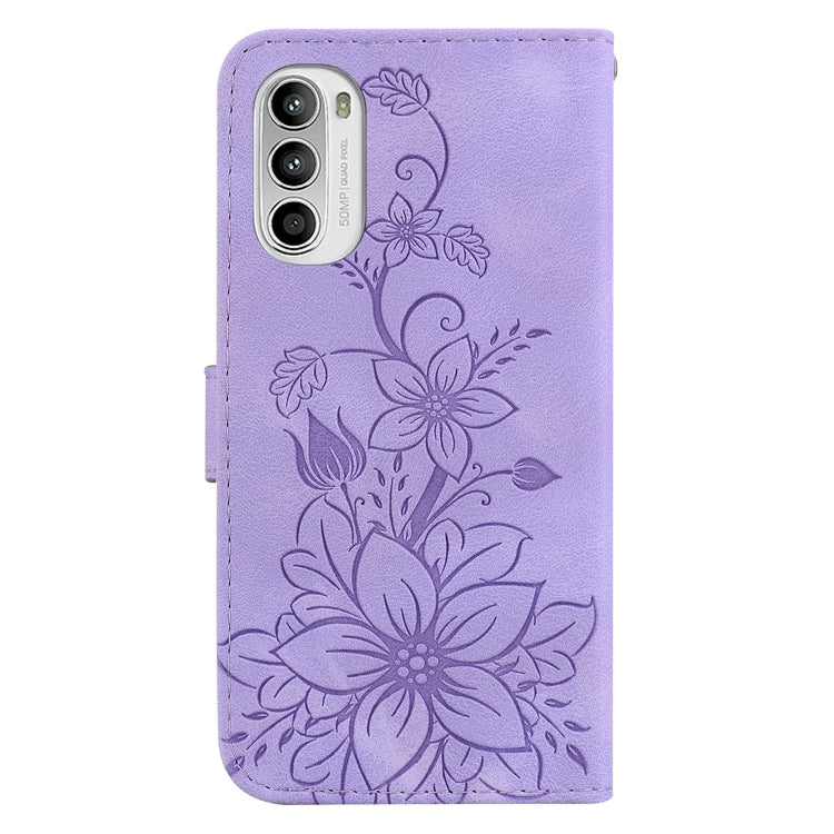 Funda de Cuero en Relieve para Motorola Moto G62 5G Lily (Púrpura)