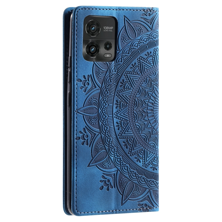 Funda de Cuero Magnética Totem para Motorola Moto G72 en Relieve (Azul)