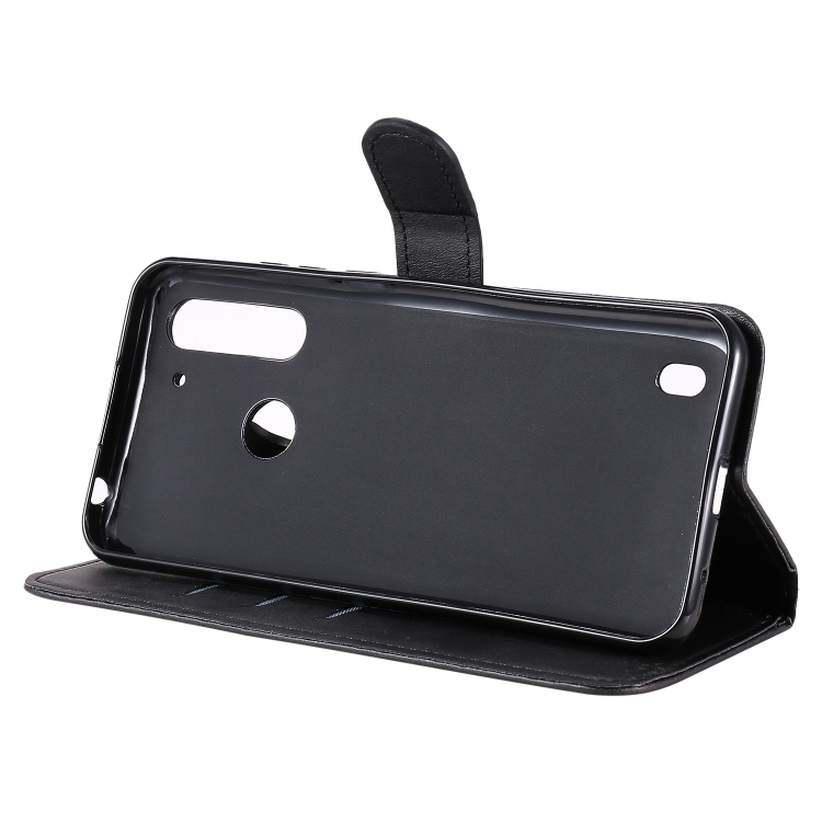 Para Motorola Moto G8 Power Lite Fashion Becerro Textura Cremallera Funda de cuero con tapa horizontal con soporte y ranuras para tarjetas y función de billetera (Negro)