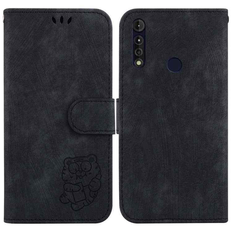Funda de Cuero para Motorola Moto G8 Power Lite con Relieve Little Tiger (Negro)