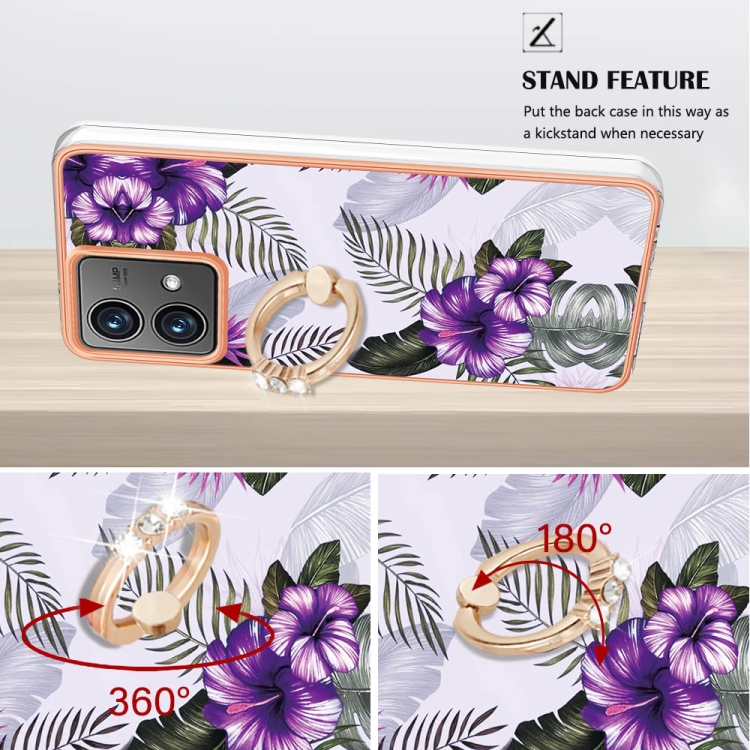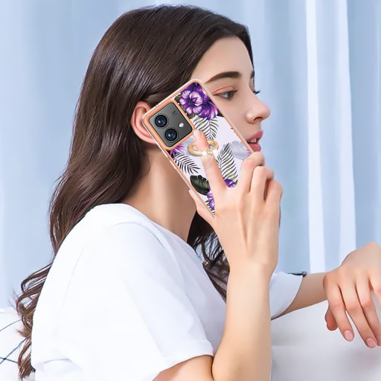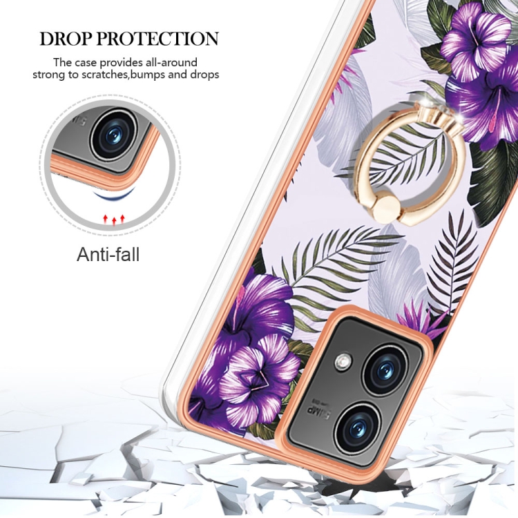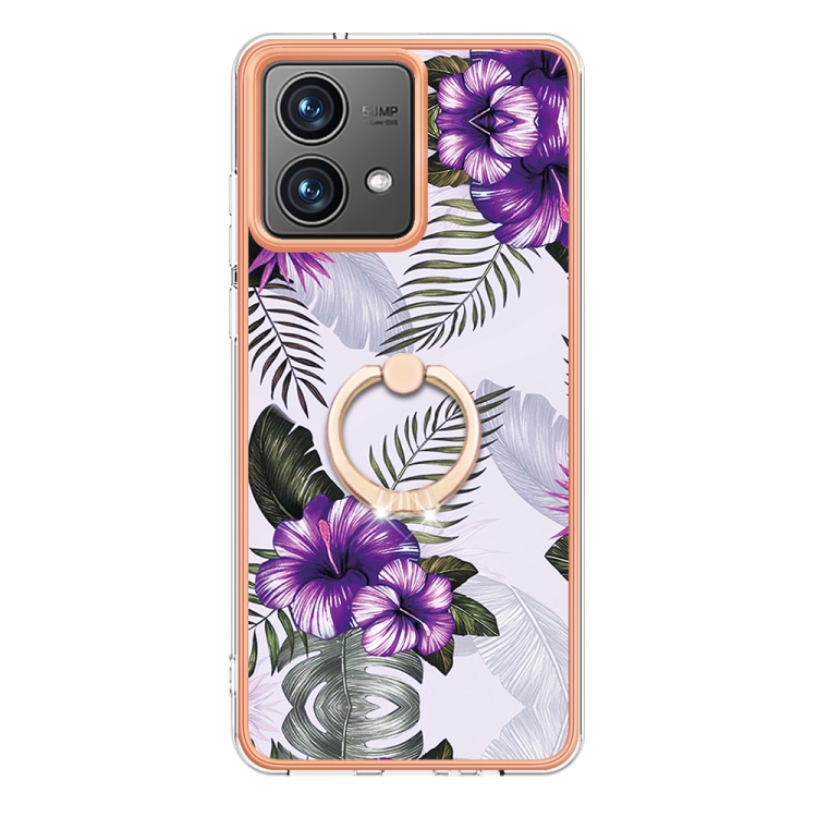 Funda para Motorola Moto G84 TPU con Galvanoplastia y Anillo (Flor Púrpura)